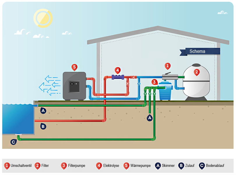 In heissen Ländern werden Wärmepumpen für private Schwimmbäder schon lange eingesetzt.